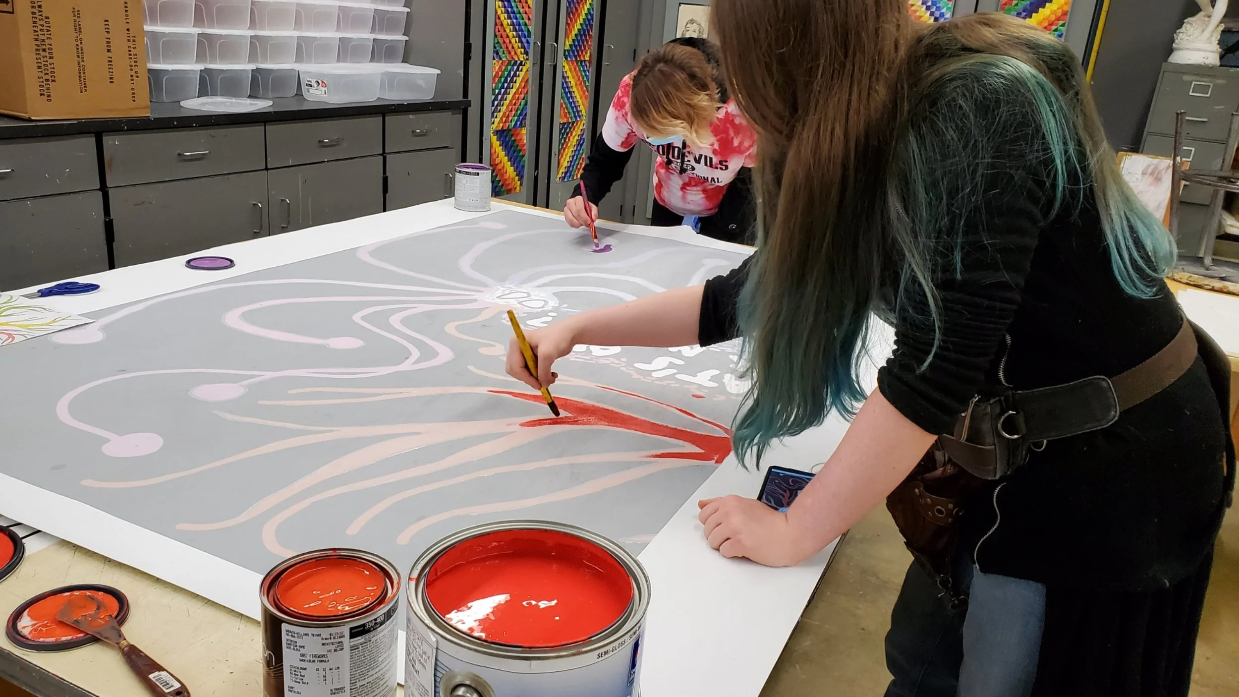 This mural (we call it “Neurospace”) was designed by Earlham College student Kate Wallace and Painted by RHS art students (thank you, Mrs. Cruse-Griffin!!!!). It will be available for collab to 1,600 high school students who will be visiting the galleries in the Richmond Art Museum from February 12 - April 2, 2022.