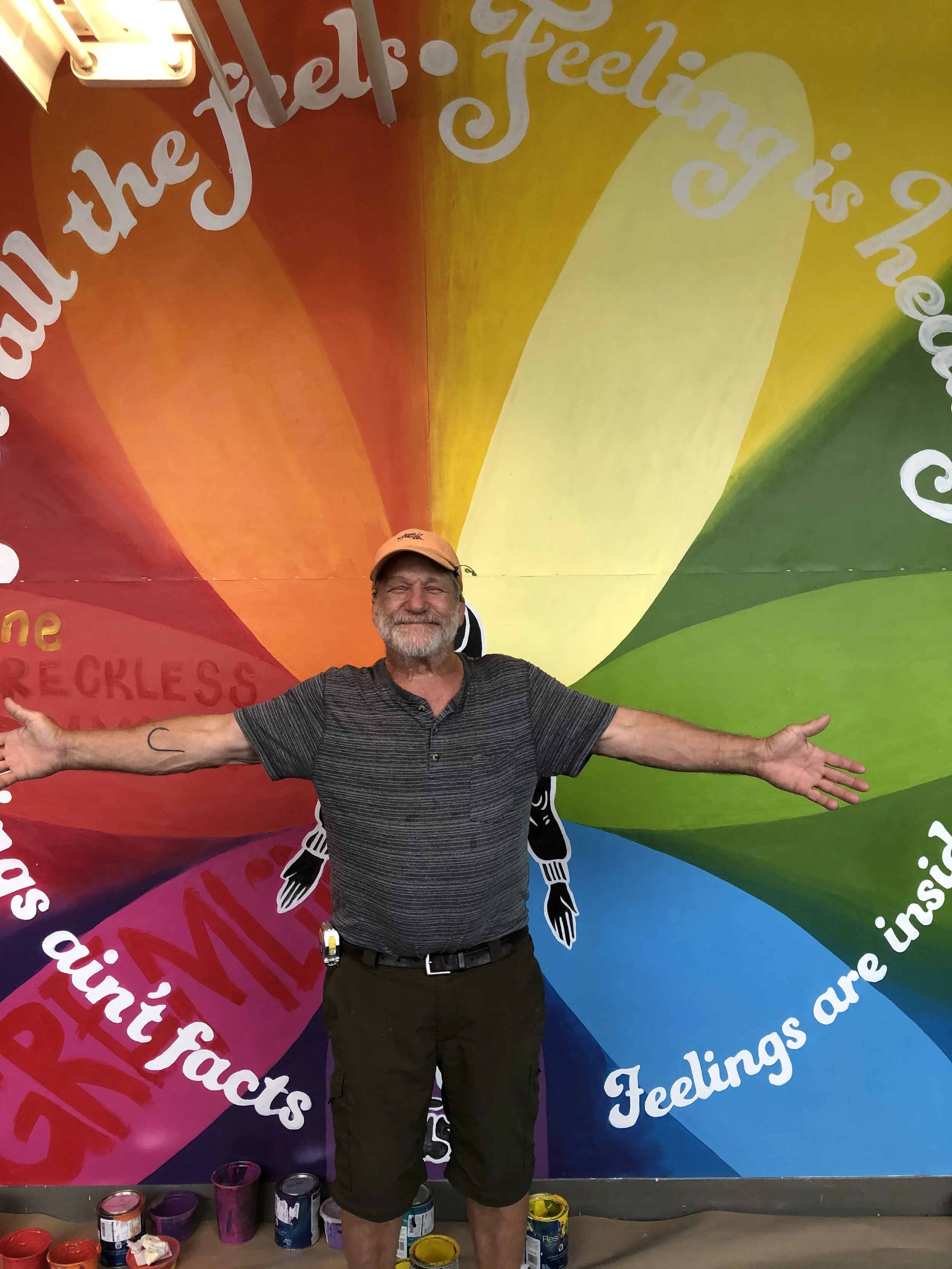 Designed by Bloomington, Indiana High Schooler Jordyn Armstrong and painted by ALBF interns, this mural was on display at the Goggleworks in the summer of 2021. The spectrum of feelings ranged from “Borderline Arson” red to “Vibin’ with the Trees” green (kids would NEVER say just, “I feel annoyed.”